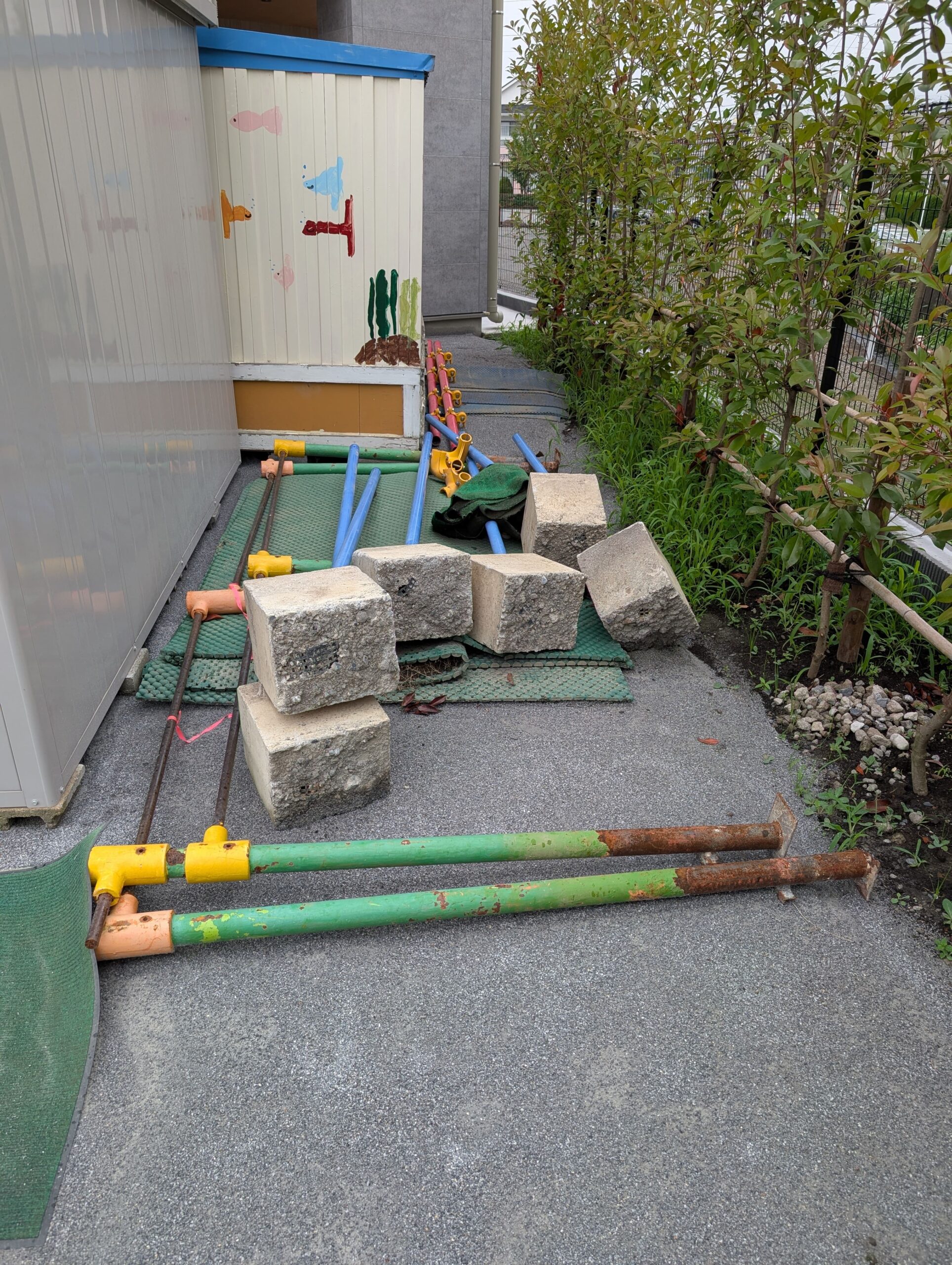 今回の工事は、既存の古い鉄棒を安全に撤去し、新しい安全基準に適合した鉄棒を設置する作業でした。