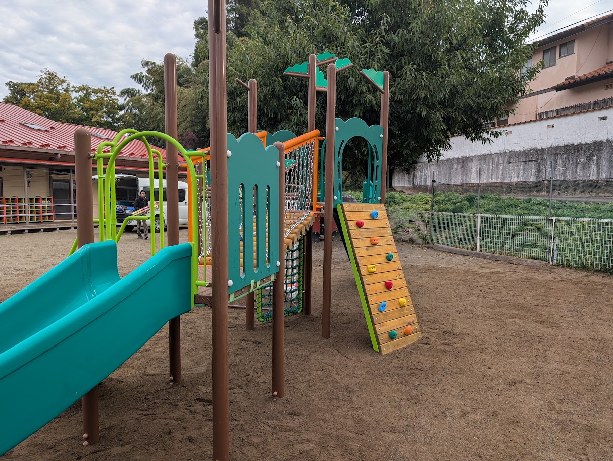保育園の遊具は、乳幼児から年長児まで幅広い年齢の子どもたちが毎日使用するものです。そのため、設置の精度・基礎の強度・各部材の締結状態が特に重要です。今回は滑り台などの遊具を、基礎工事から丁寧に施工いたしました。メーカーの施工基準に従い正確に組み立て・設置を行い、設置後は全箇所の安全点検を実施してお引渡しいたしました。